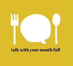 Logo for Talk With Your Mouth Full docuseries uniting strangers over meals by immigrant chefs.